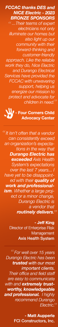 Because they can count on us. We work hard for our customers, building a reputation for integrity and quality since 1989. Times and technology have changed, but our focus on honest service hasn’t. That’s why repeat customers make up a substantial part of our business. As word of Durango Electrical Services quality and dependability spread, the scope of our operations has widened from Colorado to the 4-Corners area. The confidence that the job will be done right brings our customers back. We deliver quality work, on time, on budget—every time. And we remain on-task for follow-up.